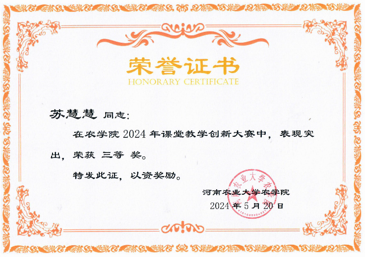博士毕业后,我选择回到农学院任教。学院领导和同事们给了我莫大的支持和关怀。还记得刚走上讲台时的我,面对课堂上几十双渴求知识的眼神,紧张的手心沁出细密的汗珠,生怕讲不好课辜负了学生。是老教授们毫无保留地分享教学经验,耐心指导我的教学设计,帮助我逐渐找到了自己的教学节奏。"传帮带"的理念在这里得到了最好的诠释,老一辈教师甘为人梯的精神让我深受感动。不想辜负老一辈教师们的付出和期望,我认真磨炼自己的教学技能,积极参加教学创新大赛,最终拿到了三等奖的成绩。虽非榜首,却给我了努力向前的动力。我深知,教学是一门良心活也是一门艺术,需要不断探索和提升,我会以此为起点在今后的教学中不断改进,为培养更多优秀农林人才贡献自己的力量。