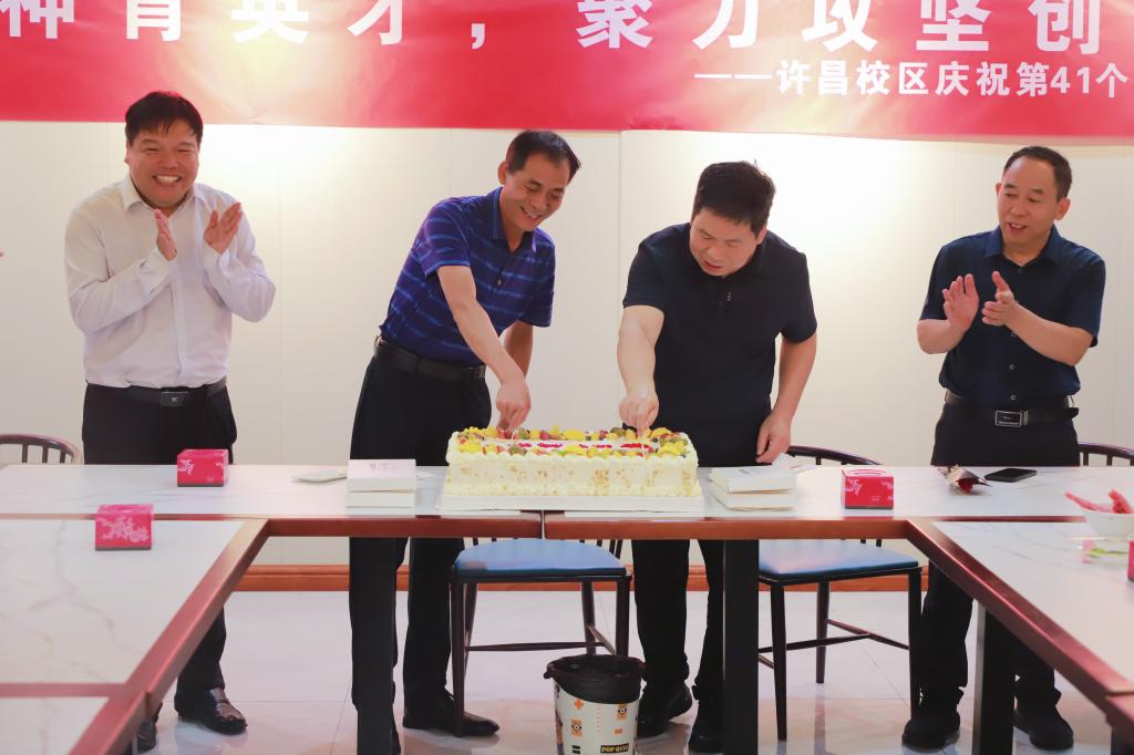 本网讯(通讯员 朱鹏琳 图片 张好)为向辛勤耕耘的师者致以温情敬意、凝聚尊师重教的磅礴力量,9月10日,许昌校区在教工餐厅举办了教师节庆祝活动。许昌校区管委会党委书记李兴旺、副主任(正处级)侯金超、教学试验场场长李宗品、软件学院党委书记李志勋及教师代表参加。