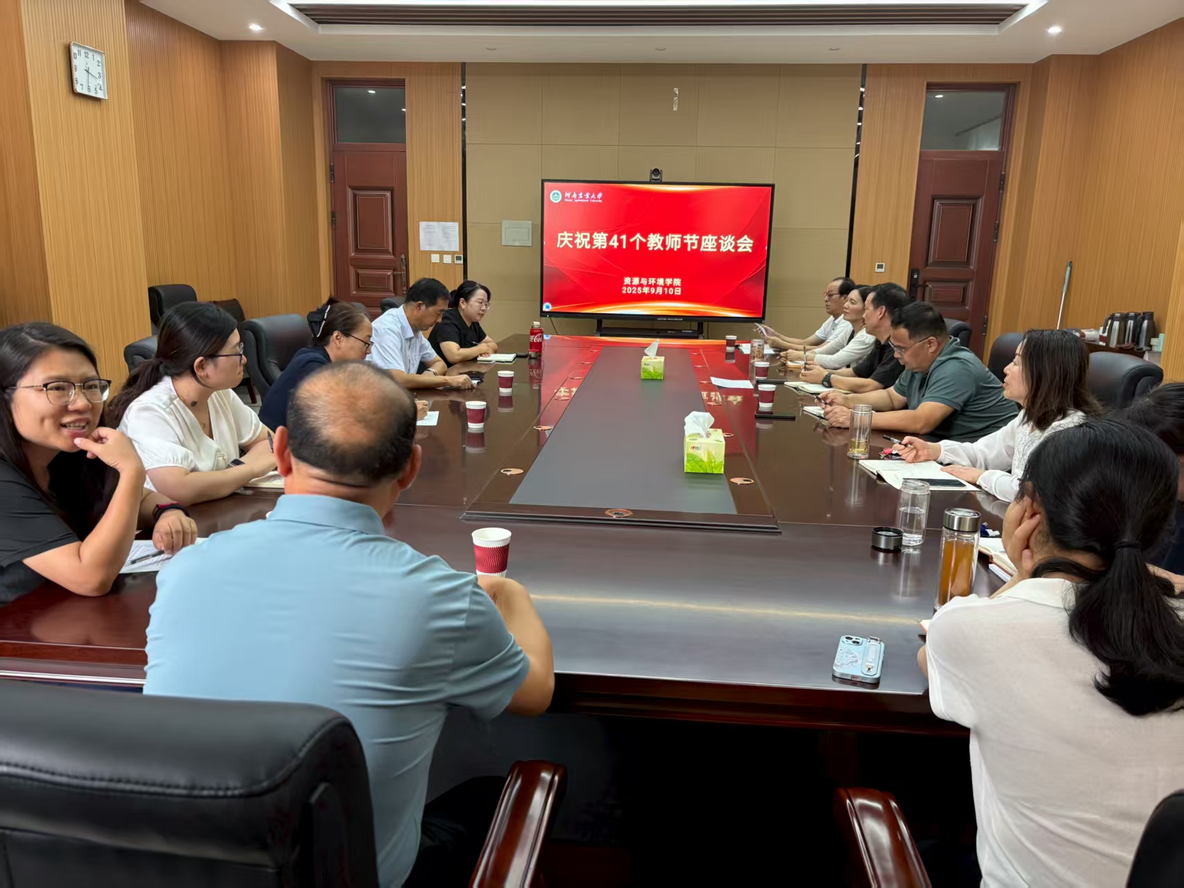 本网讯(通讯员 阎洁 图片 阎洁)金秋九月,桃李芬芳。为庆祝全国第41个教师节,资源与环境学院于9月10日在力行楼-中-254会议室召开教师节座谈会。学院领导班子成员与教师代表齐聚一堂,共话教育初心,共谋学院发展。会议由院党委书记李兴道主持。座谈会上,河南省科技小院负责人、国家级教学成果二等奖获得者叶优良教授,河南省优秀教师、国家级一流本科课程负责人黄珺嫦教授,国家级一流本科课程负责人李慧教授,河南省青年五四奖获得者姜瑛教授,2025年国家自然科学基金面上项目获得者刘亥扬等教师代表相继发言,围绕教育教学、科技创新、思政育人、社会服务及职业发展等方面,结合自身经历,深入交流教书育人感悟和潜心治学心得,并立足学院发展实际,为青年教师成长提出建设性意见。