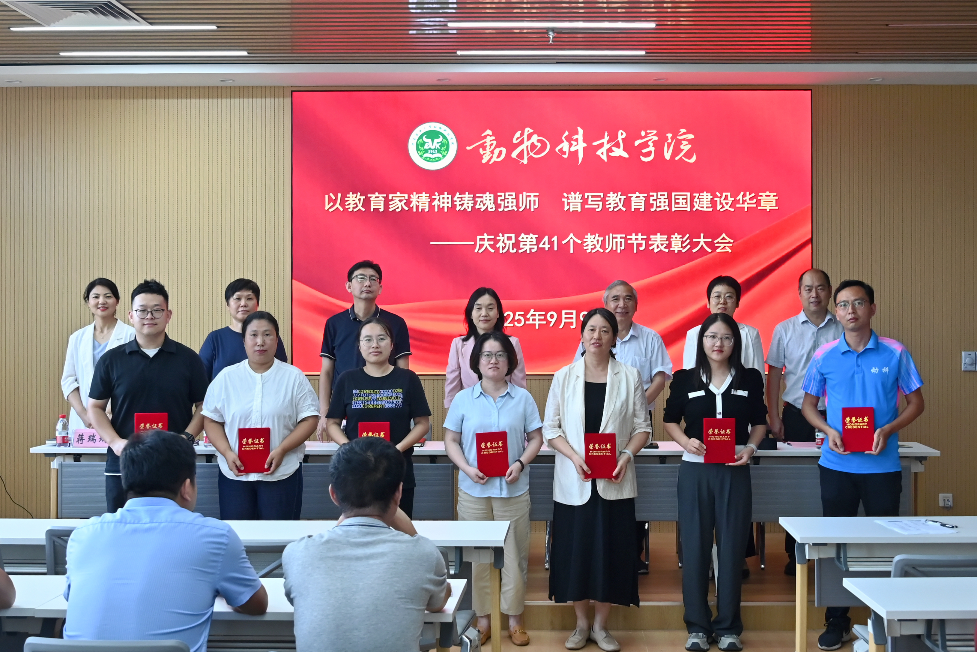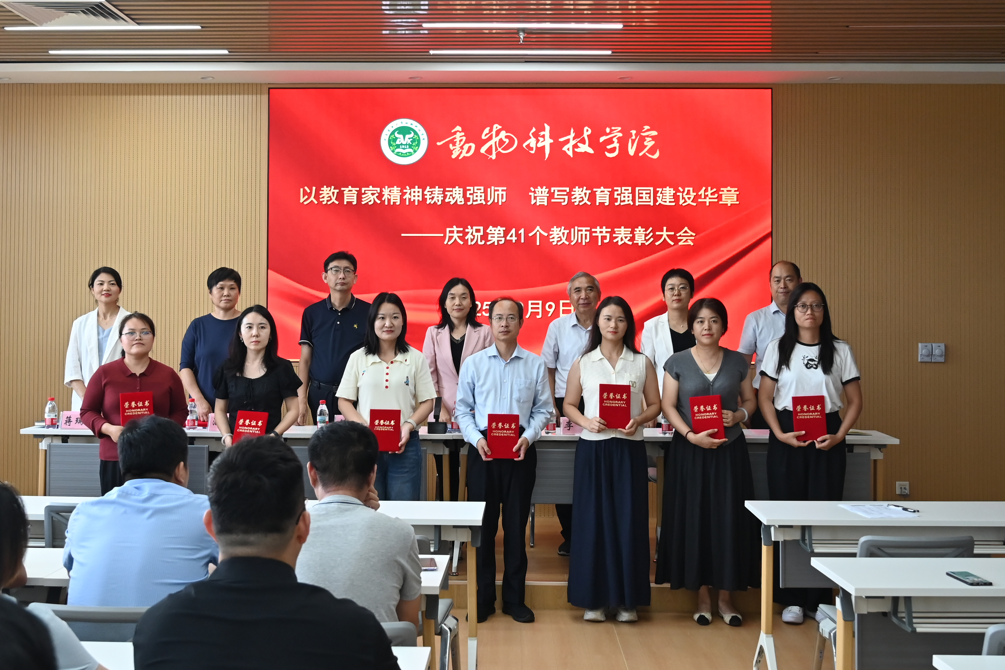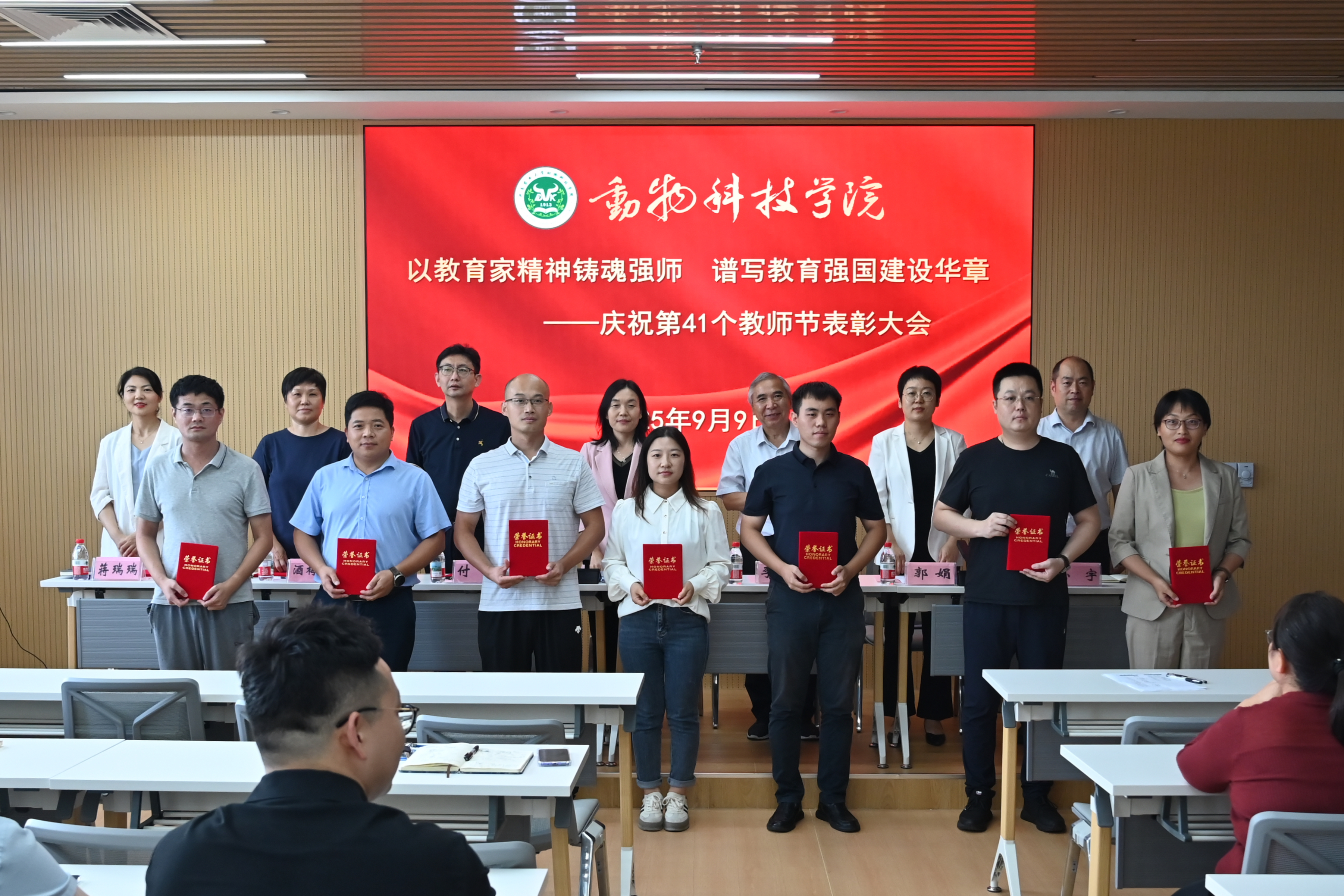 院党委书记张利冰讲话,对受表彰的优秀代表予以高度赞扬,对过去一年里,全体动科人坚守立德树人初心,在党建思政、人才培养、校企合作等方面的辛勤付出与卓越贡献表示衷心感谢,并向大家送上了节日的问候。她指出,教育是国之大计、党之大计,教师是立教之本、兴教之源。站在新的历史起点,希望大家一是恪守育人初心,做好学生的“青春引路人”。既做学识渊博、授业解惑的“经师”,更做涵养德行、润己泽人的“人师”。二是拥抱科技变革,勇做教育的“时代先行者”。不断提升自身的数字素养与技能,勇立教育创新潮头,培养出更多能够适应并引领未来发展的拔尖创新人才。三是心系“国之大者”,甘当服务发展的“实干家”。既要深耕于三尺讲台和科学实验的方寸之间,更要仰望星空,将个人的学术追求与国家的宏伟蓝图、社会的实际需要紧密结合,续写代代动科人把个人理想融入国家战略、行业需求、学院发展的奋斗史。她号召,全体教职工要始终铭记嘱托,以教育家精神为引领,将今天的荣誉转化为明天奋进的动力,继续以赤诚之心、奉献之心、仁爱之心投身教育事业,为培养更多担当民族复兴大任的时代新人,为学校的高质量发展和教育强国建设作出更大贡献。